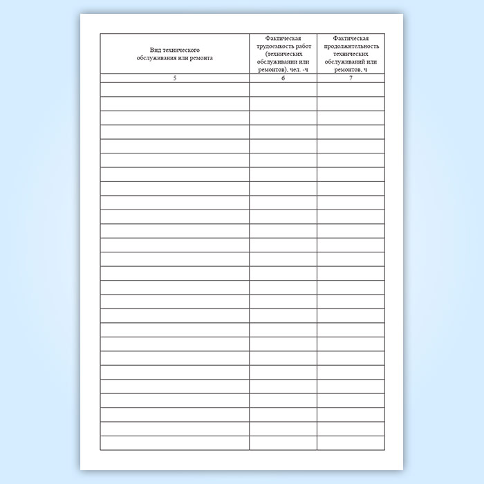 6 Фактическая трудоемкость работ (технических обслуживании или ремонтов), чел. -ч
