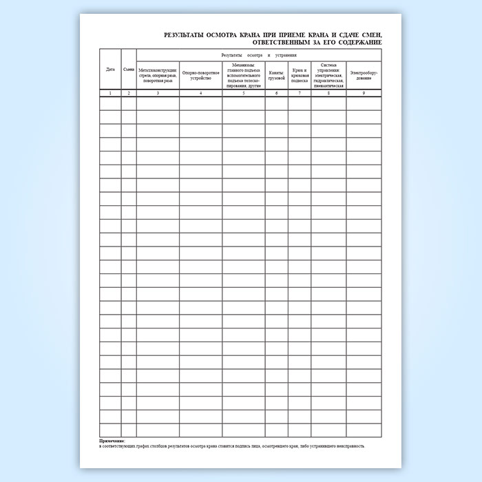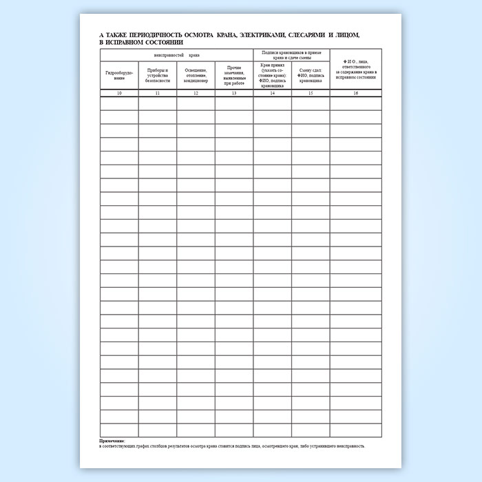 Вахтенный журнал крана имеет графы: