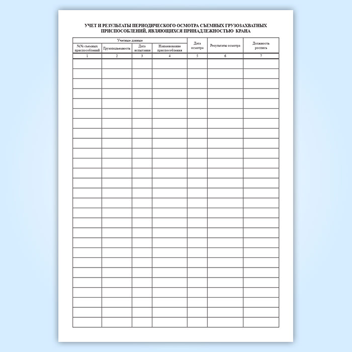 Учет и результаты периодического осмотра съемных грузозахватных приспособлений, являющихся принадлежностью крана