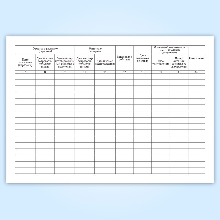 Графы журнала поэкземплярного учета СКЗИ, эксплуатационной и технической документации к ним, ключевых документов (для органа криптографической защиты):