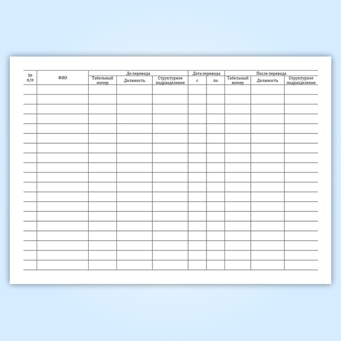 С целью учета переводов работников кадровым отделом ведется специальный журнал, в котором указывают должность сотрудника до и после перевода.