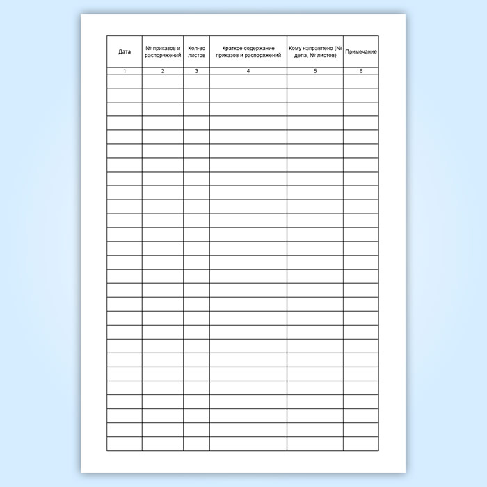 Все страницы книги регистрации приказов должны быть пронумерованы, а сама книга прошнурована и скреплена печатью организации и подписью ответственного за ведение журнала.