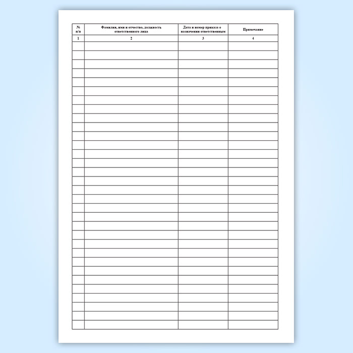 Журнал регистрации лиц, ответственных за ведение паспорта и осуществления надзора необходимо прошнуровать, пронумеровать, подписать руководителем организации и скрепить печатью.