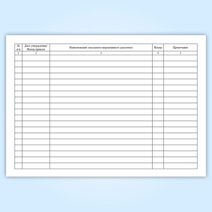 См. также Журнал учета локальных нормативных актов, графы которого идентичны.