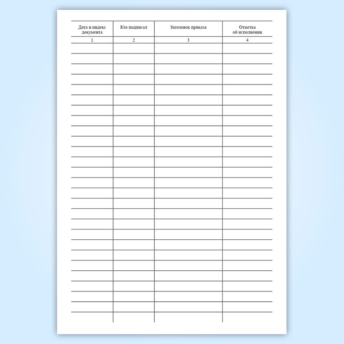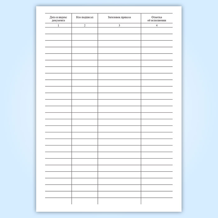 Журнал регистрации приказов по основной деятельности предназначается для записи учетных данных распорядительных документов, имеющих общее значение для всей организации.