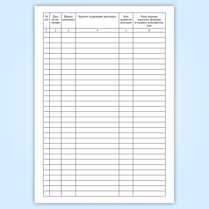 6. Кому передан документ, фамилия и подпись исполнителя, дата