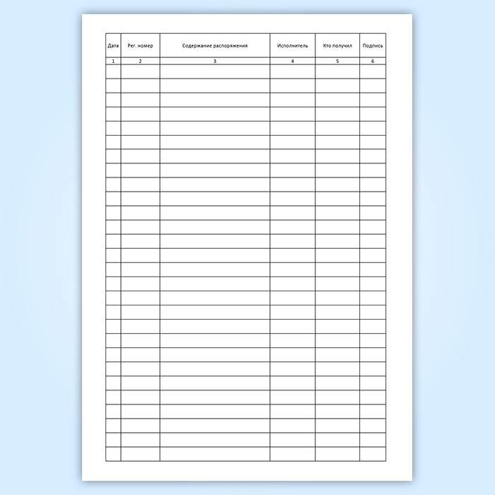 Журнал регистрации распоряжений