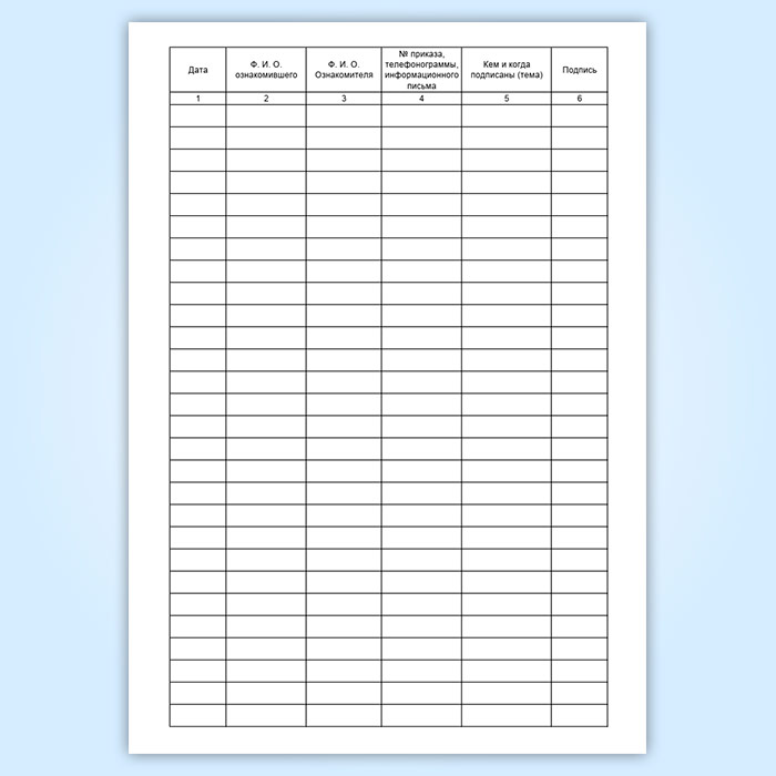 Графы журнала ознакомления с приказами, телеграммами, информационными письмами: