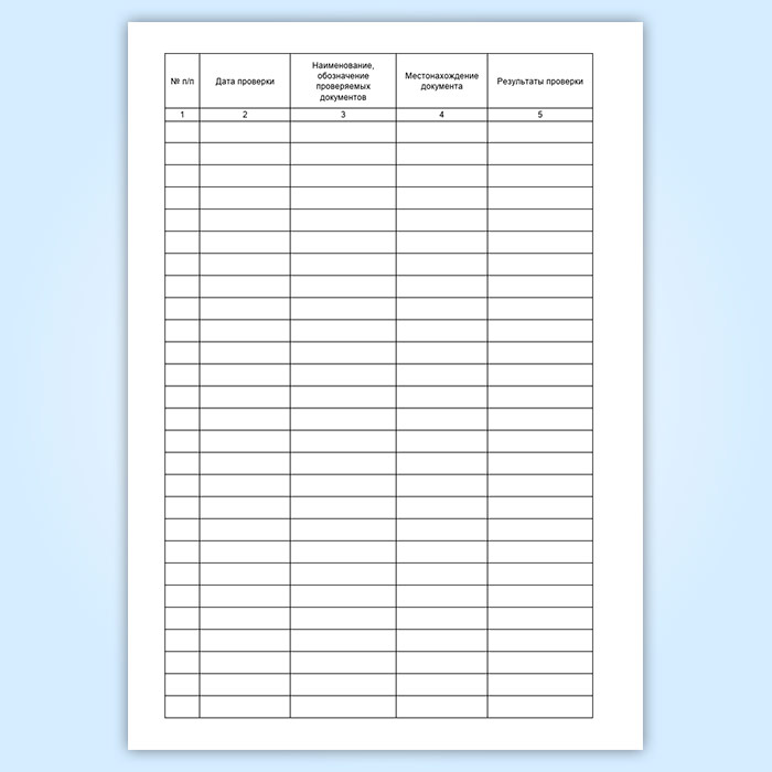 Журнал проверки документации имеет графы: