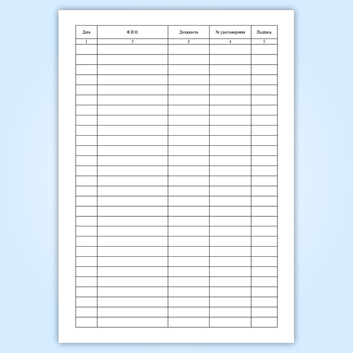 См. также Журнал регистрации удостоверений или Журнал выдачи удостоверений, которые одинаковы по назначению, но имеют несколько иные графы.