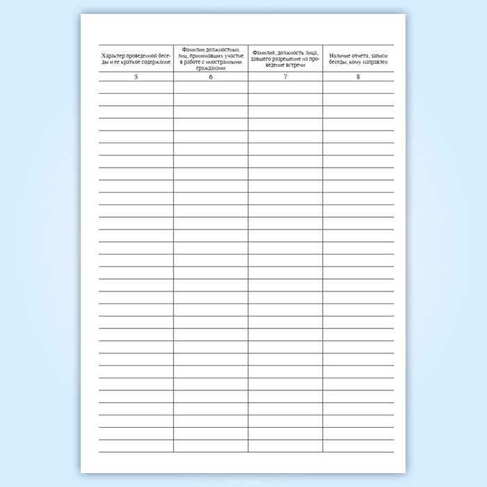 Журнал учета приемов иностранных граждан форма 20 имеет графы (столбцы):
