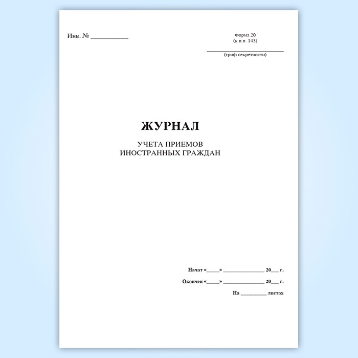 Журнал учета приемов иностранных граждан (форма 20)