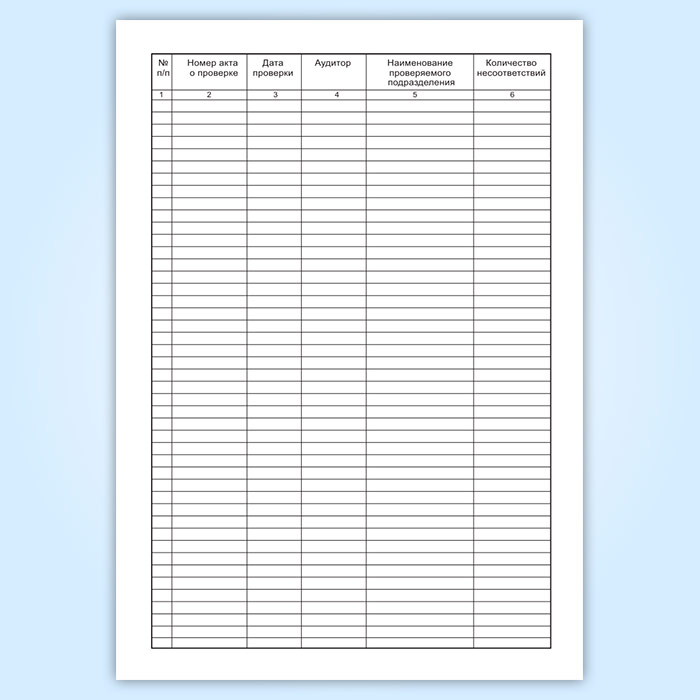 Журнал регистрации актов внутренних проверок имеет графы (столбцы):