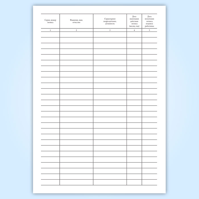 Журнал учета выдачи страховых полисов обязательного медицинского страхования работникам