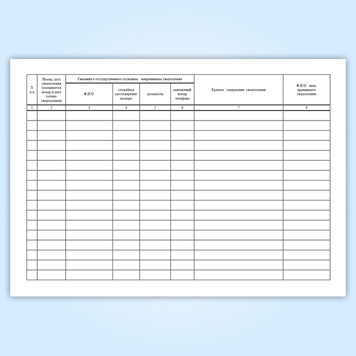 Регистрация уведомления осуществляется в день его поступления в подразделение кадровой службы налогового органа в журнале.