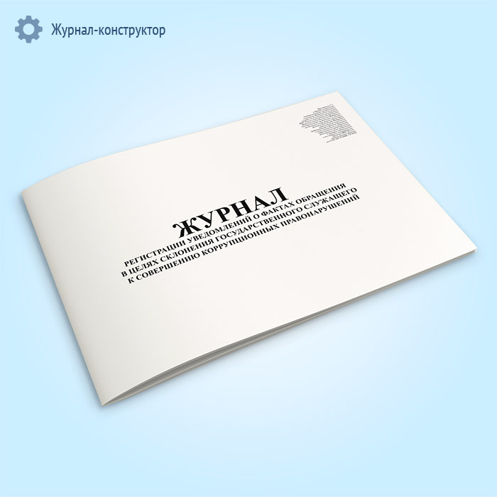 Форма журнала соответствует Приложение N 2 к Приказу ФНС РФ от 15.03.2011 N ММВ-7-4/202@ "О порядке уведомления государственными гражданскими служащими Федеральной налоговой службы представителя нанимателя (работодателя) о фактах обращения в целях склонения их к совершению коррупционных правонарушений, регистрации таких уведомлений и проверки содержащихся в них сведений"