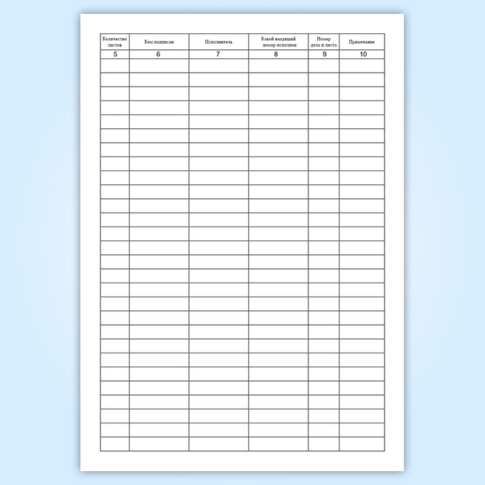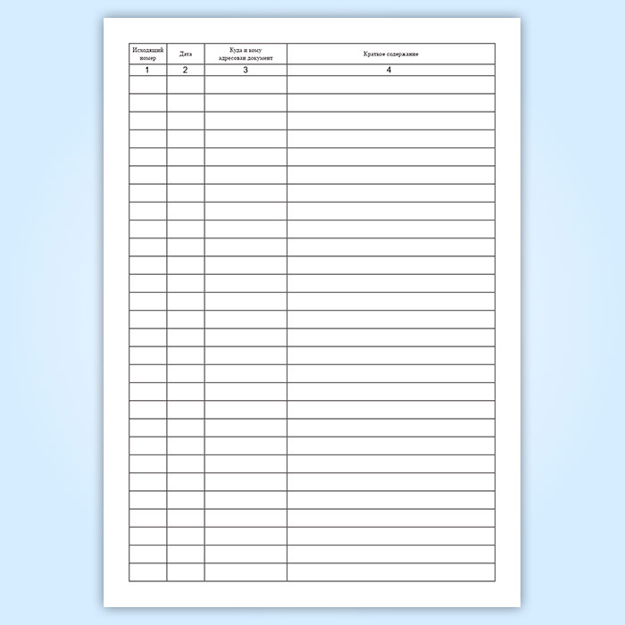 Книга регистрации исходящих документов имеет графы (столбцы):