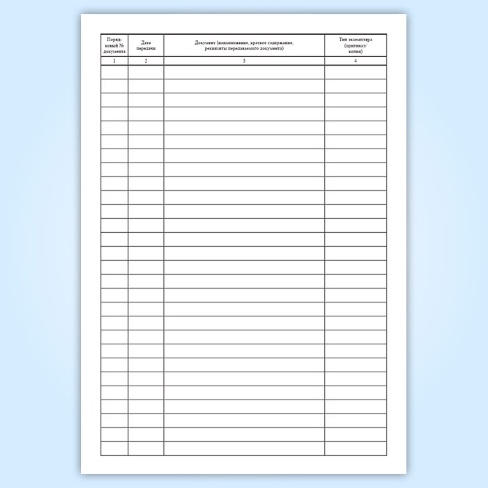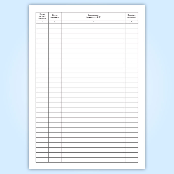 Графы журнала передачи документов: