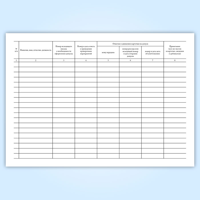 Журнал учета карточек на допуск граждан к государственной тайне (Форма 9) имеет графы: