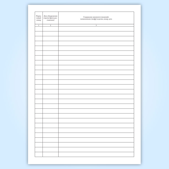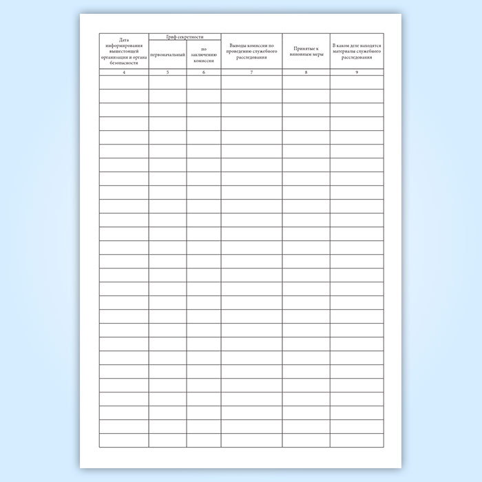 Журнал учета утрат секретных документов (изделий) и фактов разглашения секретных сведений имеет графы (столбцы):