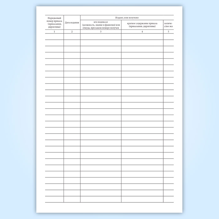 Книга учета совершенно секретных и секретных приказов, приказаний и директив имеет графы:
