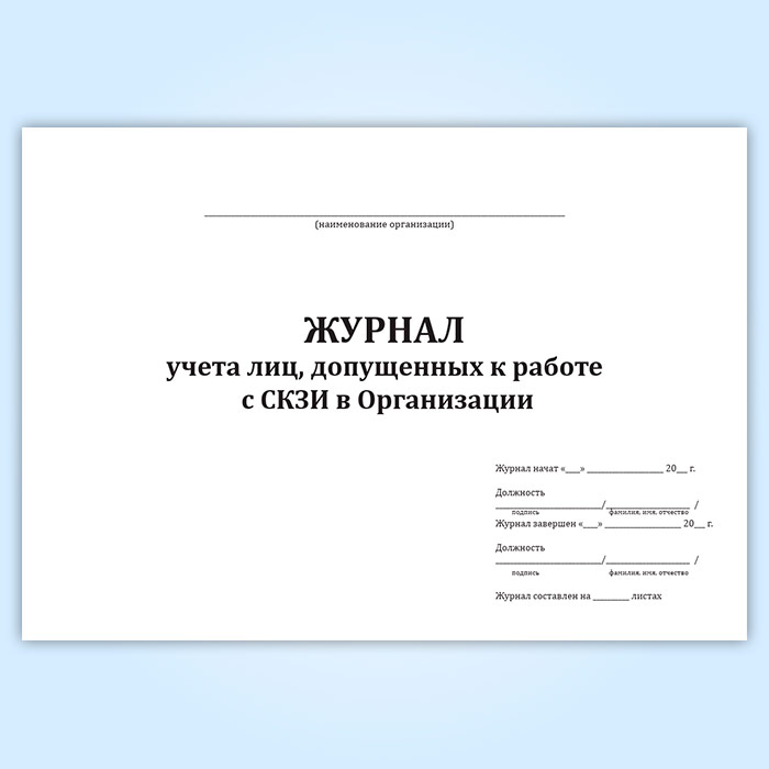 Журнал входит в комплект документов и журналов по средствам криптографической защиты информации (СКЗИ)