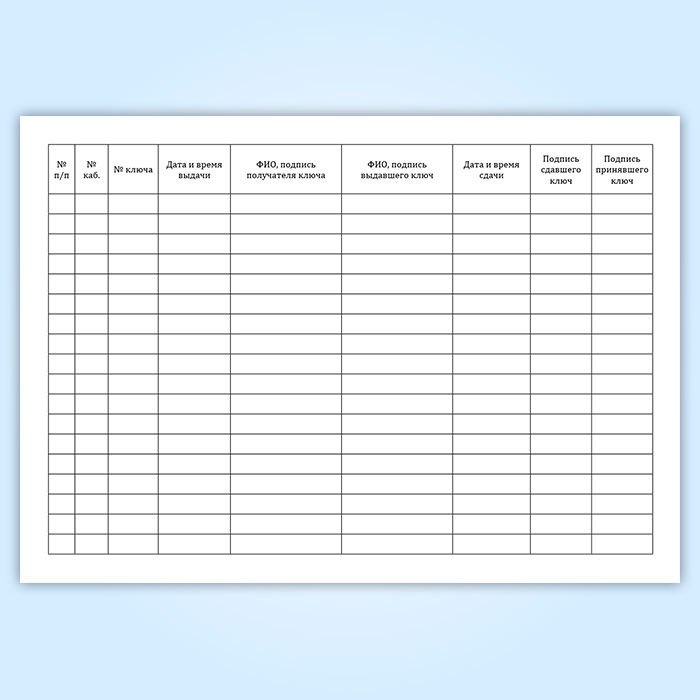 Журнал учета ключей в организации