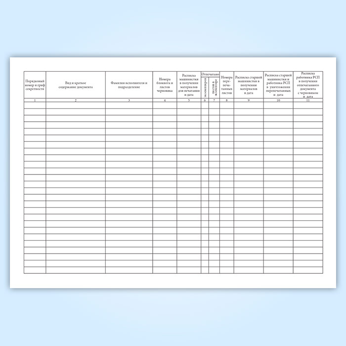 Журнал учета документов, отпечатанных в машинописном бюро имеет графы: