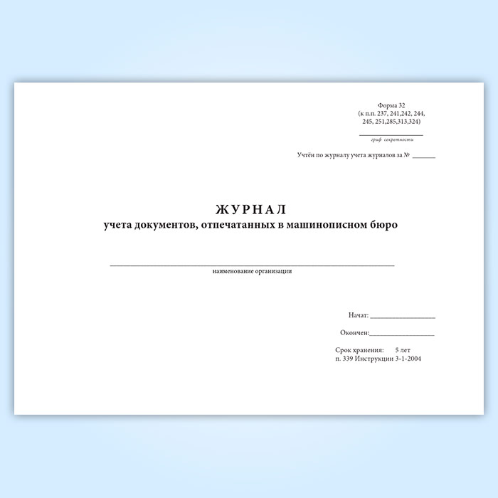 Журнал учета документов, отпечатанных в машинописном бюро (форма 32)