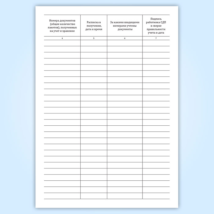3. Номер документов, указанных на пакетах, общее количество пакетов (прописью), расписка в приеме корреспонденции, дата и время получения