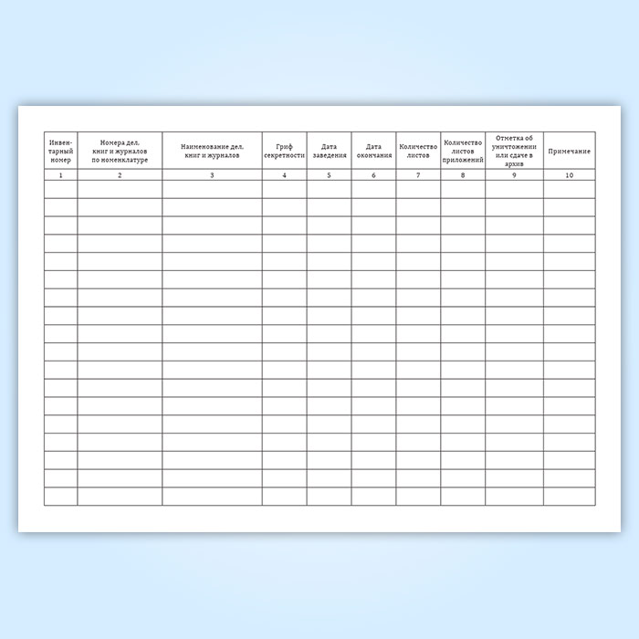 Инвентарная книга учета особой важности, совершенно секретных и секретных дел, книг и журналов, находящихся на архивном хранении имеет графы: