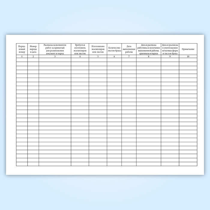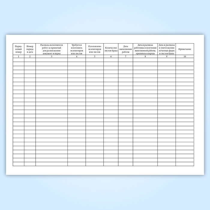 Журнал учета выполнения секретных работ по нарядам