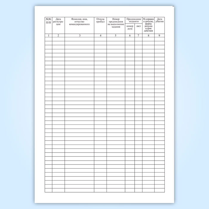 Форма журнала учета командированных соответствует Постановлению Правительства РФ от 06.02.2010 N 63 " Об утверждении Инструкции о порядке допуска должностных лиц и граждан Российской Федерации к государственной тайне" , а также Приложению к Приказу Министра обороны РФ от 27.10.2010 N 1313 " Об утверждении Инструкции о порядке допуска к государственной тайне военнослужащих, лиц гражданского персонала Вооруженных Сил Российской Федерации и граждан Российской Федерации, пребывающих в запасе и поступающих на военную службу по контракту либо подлежащих призыву на военную службу (в том числе по мобилизации), на военные сборы, а также граждан Российской Федерации, не пребывающих в запасе и подлежащих призыву для прохождения военной службы, которым требуется допуск к государственной тайне для исполнения служебных обязанностей"