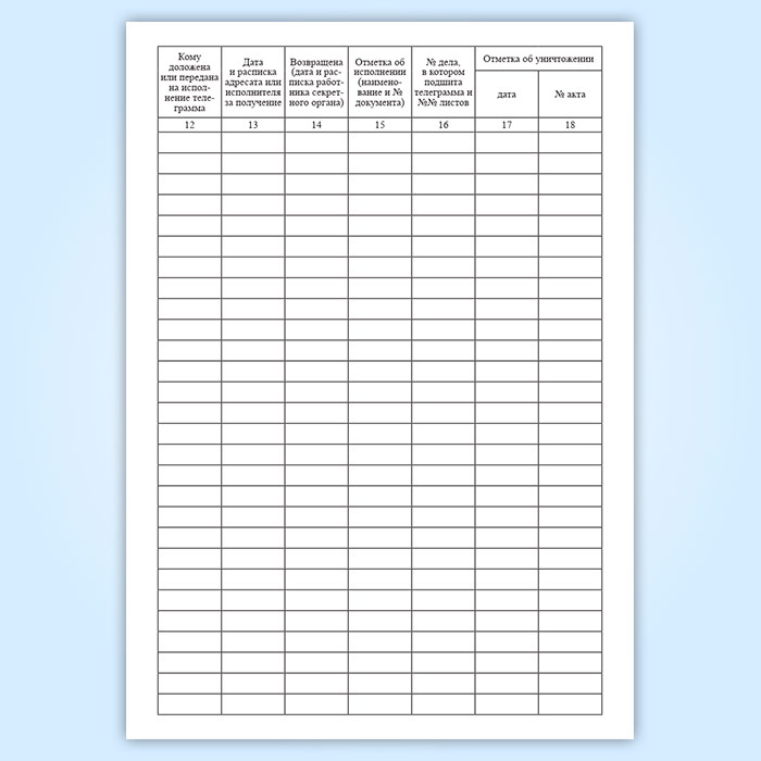 Журнал учета шифртелеграмм, переданных на постоянное хранение в секретный орган имеет графы: