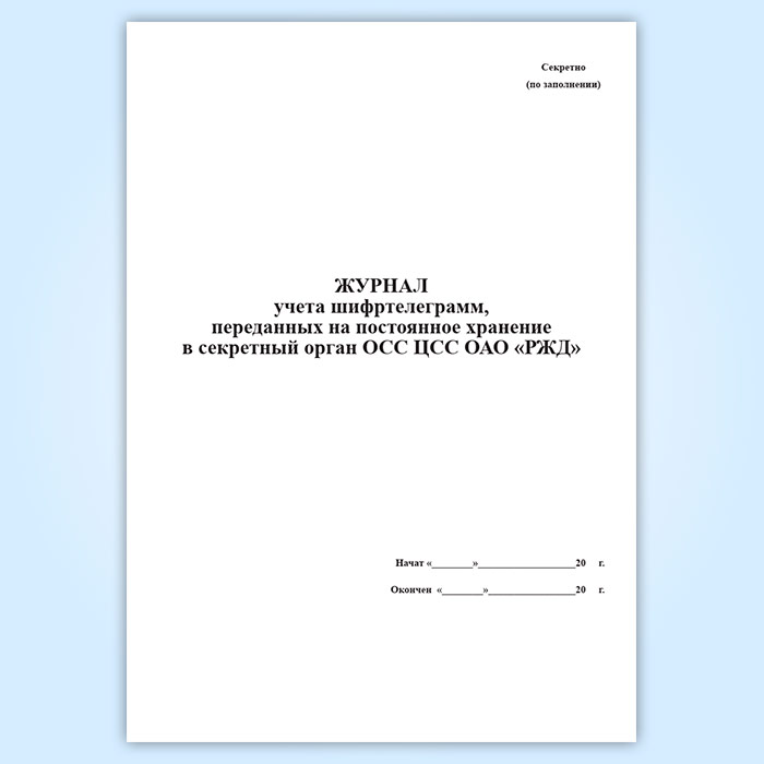 Журнал учета шифртелеграмм, переданных на постоянное хранение в секретный орган