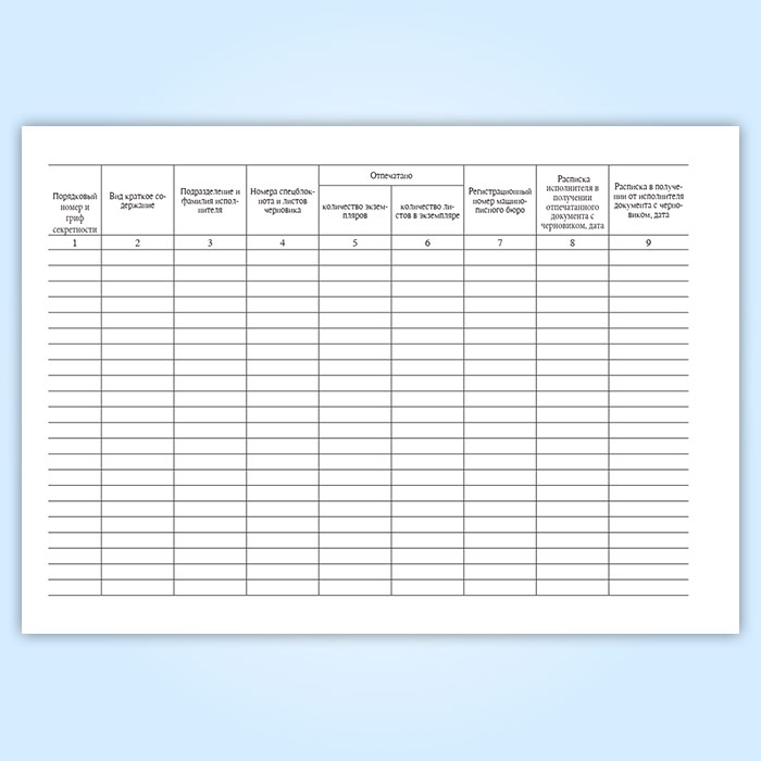 Графы журнала учета подготовленных секретных документов (Форма 33):