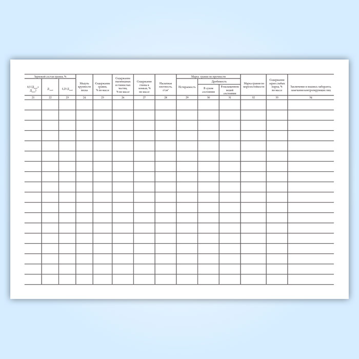 Журнал испытания песчано-гравийной смеси (Форма Д-8) имеет графы: