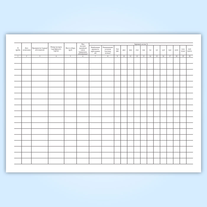 Журнал испытания песчано-гравийной смеси (форма Д-8)