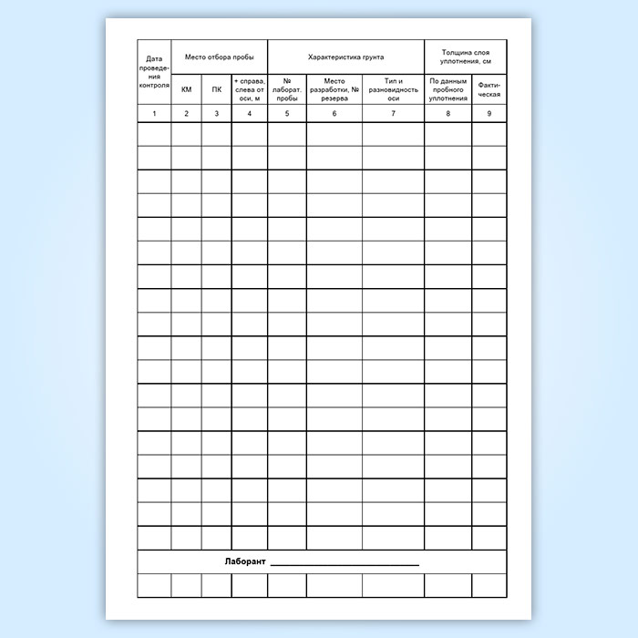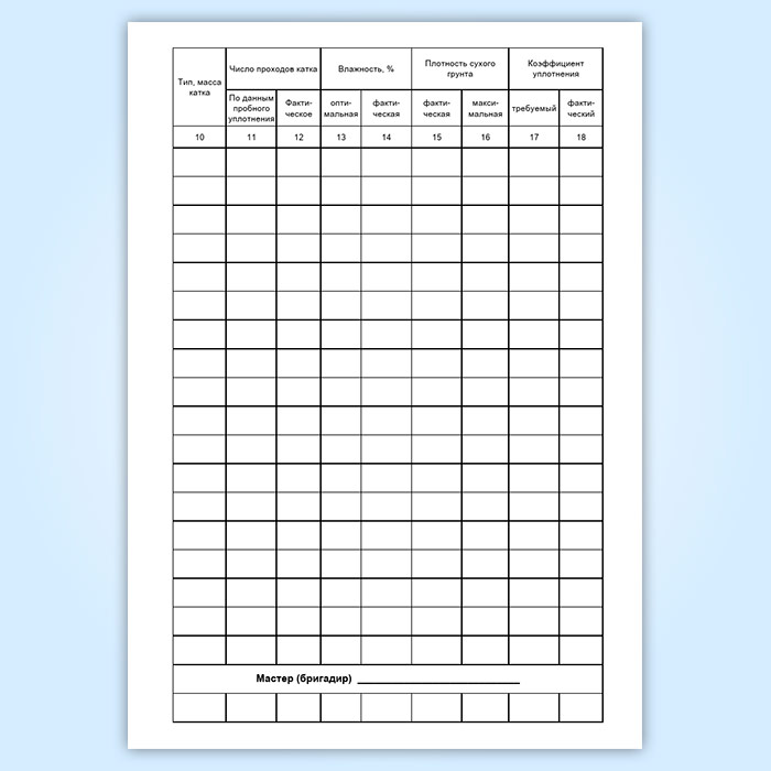 Журнал контроля уплотнения насыпей имеет графы (столбцы):