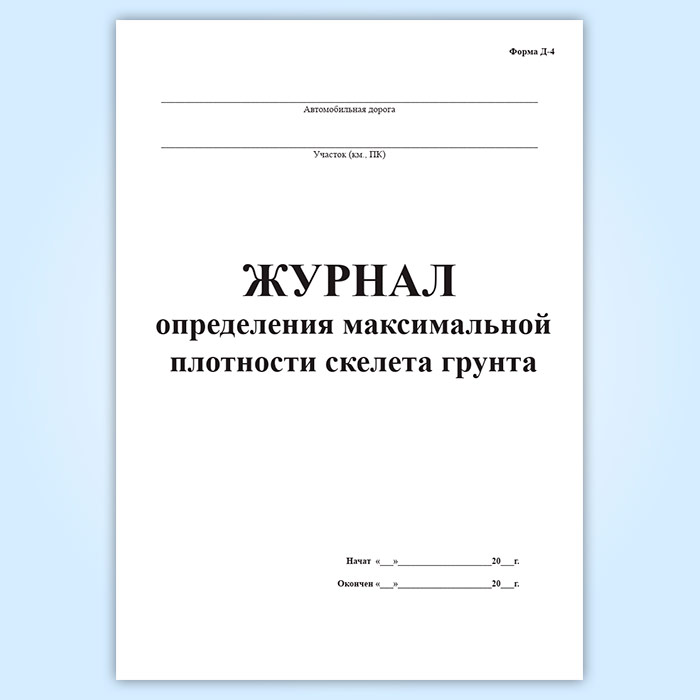 Журнал определения максимальной плотности скелета грунта