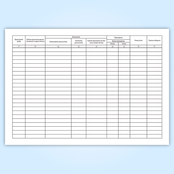 Журнал приготовления битума форма 9 имеет графы (столбцы):