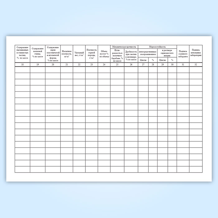 В настоящее действует журнал испытаний щебня, песка, гравия, Приложение 3 к Пособия по строительству асфальтобетонных покрытий и оснований автомобильных дорог и аэродромов (к СНиП 3.06.03-85 и СНиП 3.06.06-88).