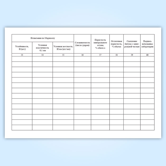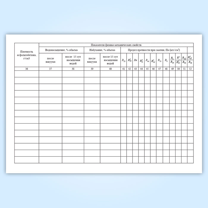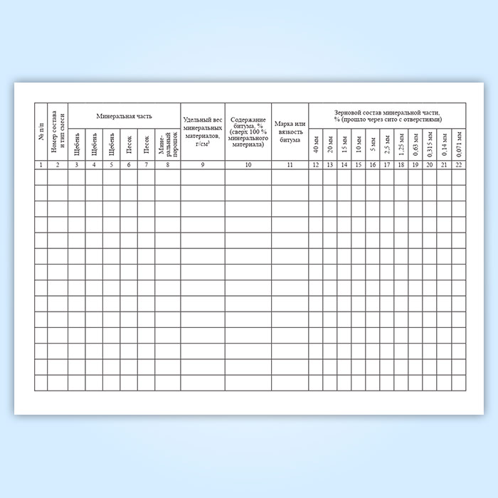 Журнал подбора составов асфальтобетона и испытания образцов при подборе составов имеет графы: