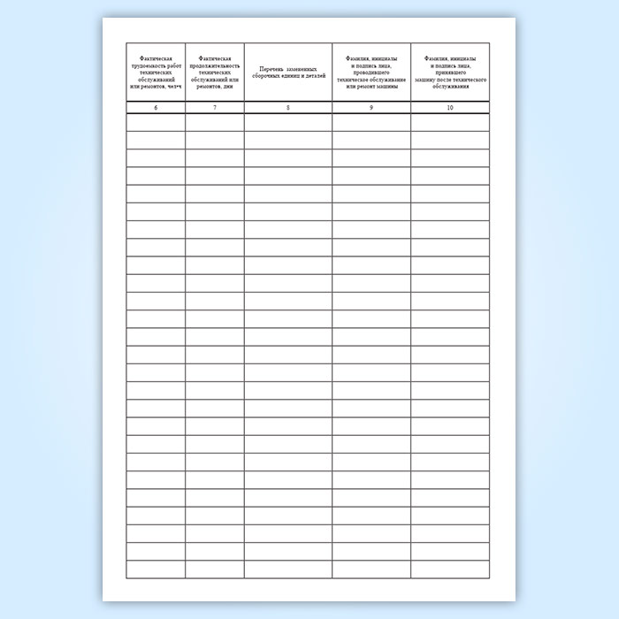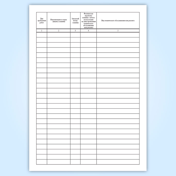 Журнал учета технического обслуживания и ремонта машин имеет графы: