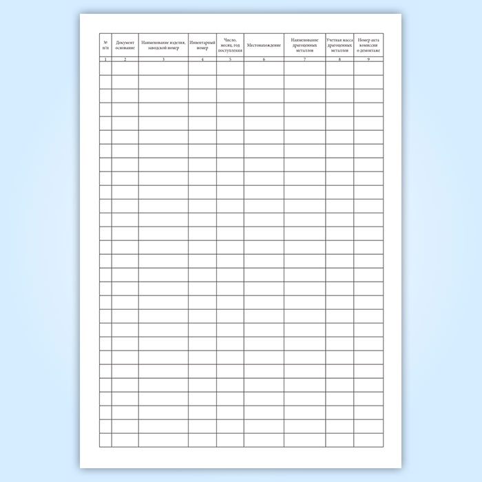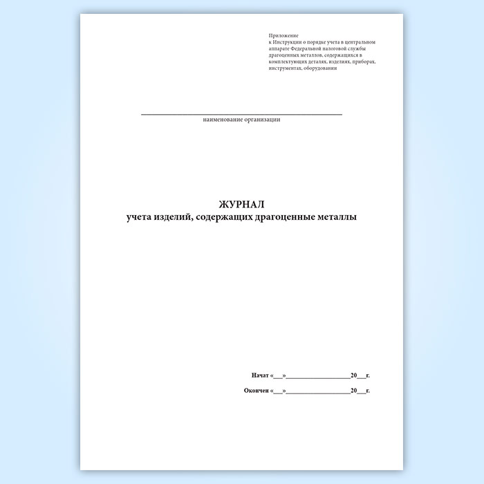 Журнал учета изделий, содержащих драгоценные металлы
