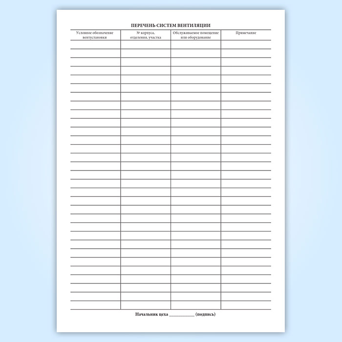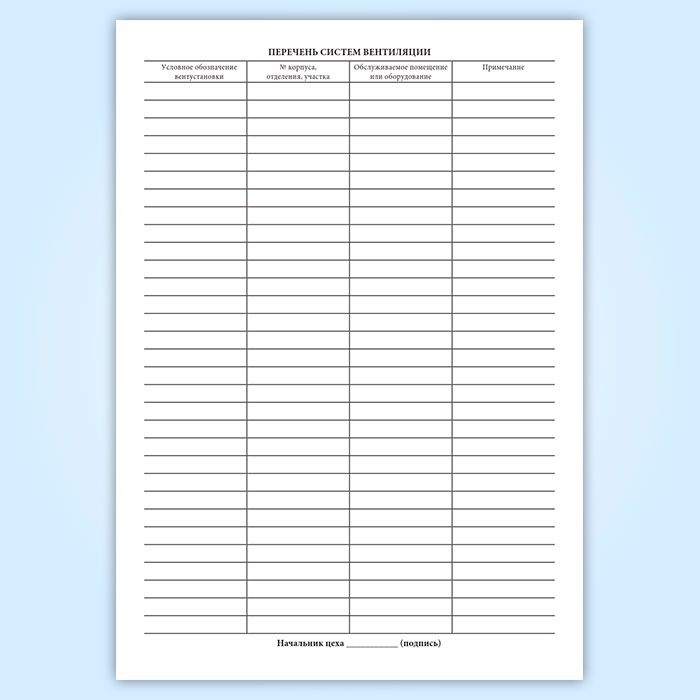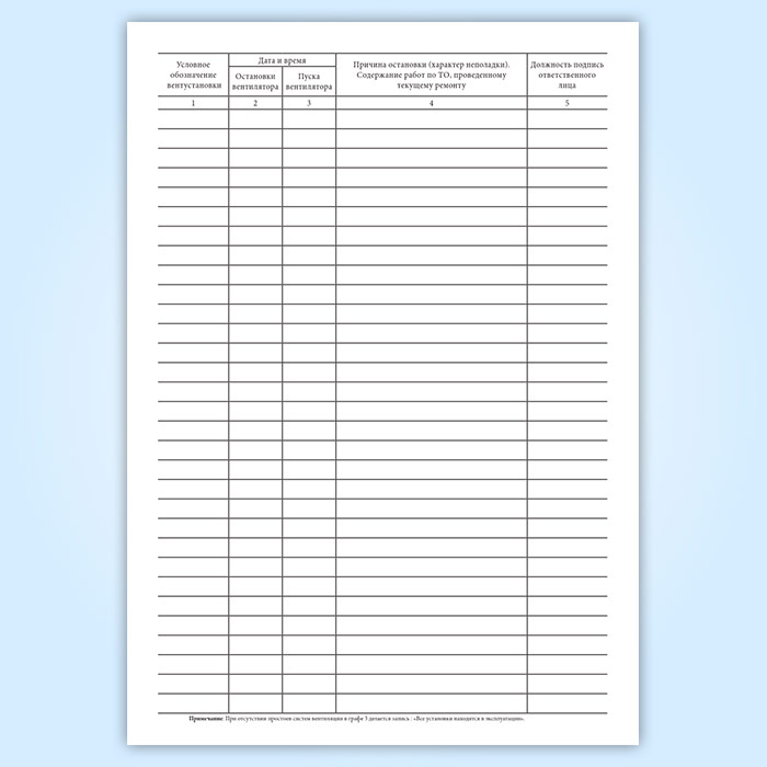 Журнал по эксплуатации и техническому обслуживанию систем вентиляции