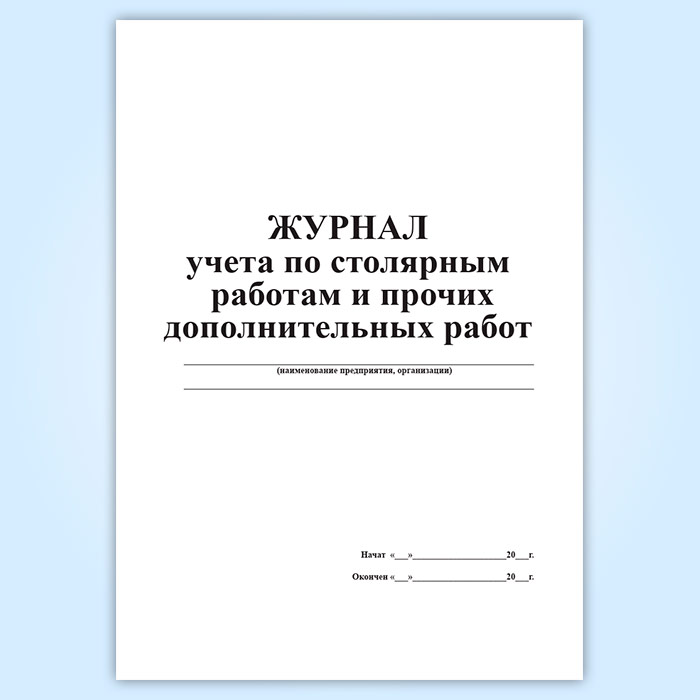 Журнал учета по столярным работам и прочих дополнительным работ - документ, заполнение которого необходимо для ведения учета уже выполненных работ. Данный документ заполняется после каждой выполненной работы и, таким образом, и является накопительным.