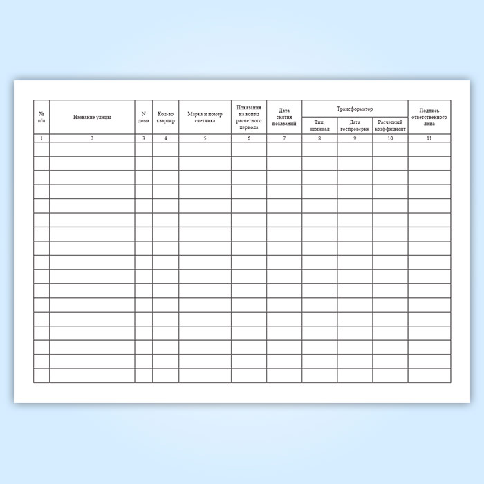Графы журнала учета электроэнергии по показаниям коллективных (общедомовых) приборов, установленных в многоквартирных домах: