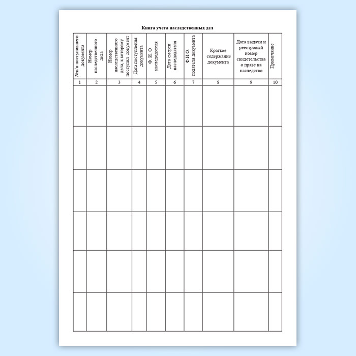 Книга учета наследственных дел имеет графы: