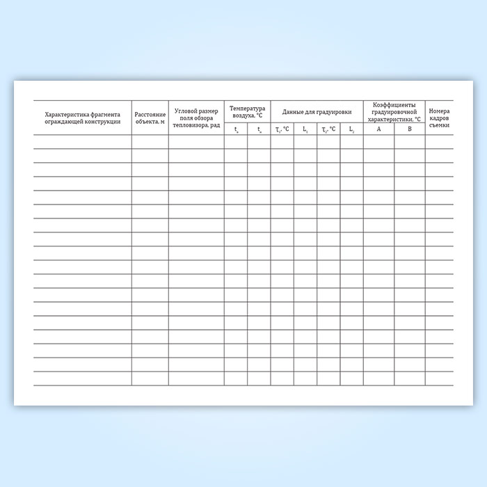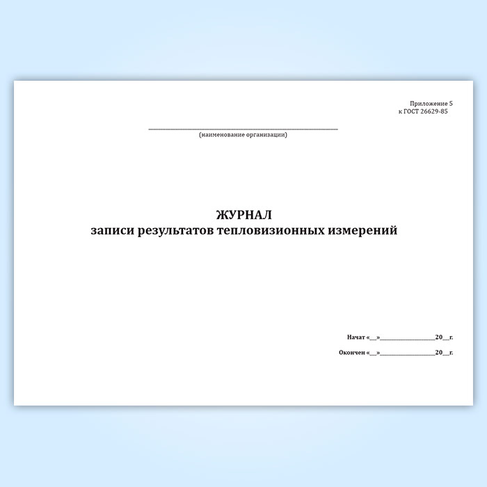 Фоpма Журнала записи pезультатов тепловизионных измеpений соответствует Приложению 5 к ГОСТ 26629-85 "Здания и сооружения. Метод тепловизионного контроля качества теплоизоляции ограждающих конструкций"
